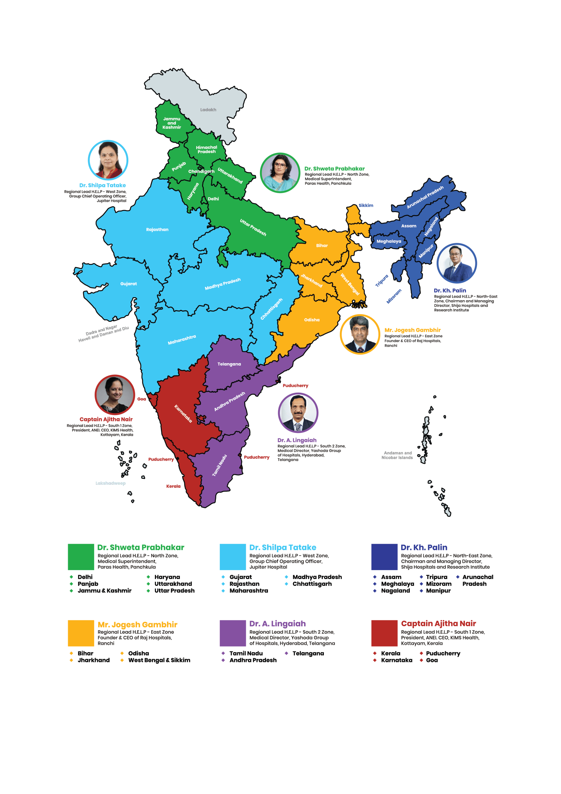 India is divided into six regions—North, East, North East, West, South I, and South II—each managed by a Regional Lead who drives member engagement and enrolment across multiple states. Regional Leads serve on the Steering Committee to ensure coordinated national efforts.